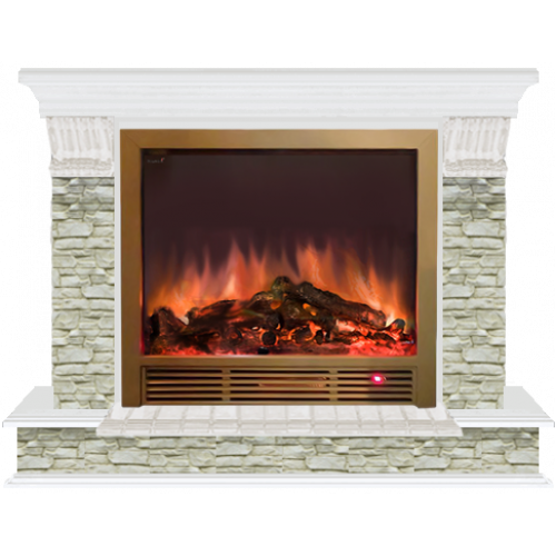 Каминокомплект Glenrich Панорама Грот однотонный Sharm 33 (белый)+Sharm 33 BR