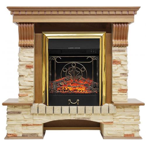 Каминокомплект Royal Flame Pierre Luxe сланец (дуб)+Majestic FX Brass