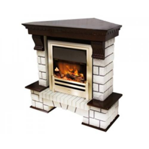 Угловой каминокомплект «Pierre Luxe» оборудован современным очагом «Opti-Myst Cavendish», выполненным в классическом стиле. Отлично подойдет данная модель камина в том случае, если в вашем помещении имеется незанятый угол. За счет угловой конструкции камин при своих достаточно больших габаритах выглядит довольно компактно. При изготовлении основы портала используется современный материал МДФ, отличающийся небольшим весом и достаточно высокой прочностью. Естественно, с натуральным камнем его не сравнить, но зато процесс монтажа при этом значительно облегчается. Боковины портала и его основание облицованы материалом, имитирующим натуральный камень белого цвета. Декоративные же элементы облицованы натуральным шпоном под цвет темного дуба.