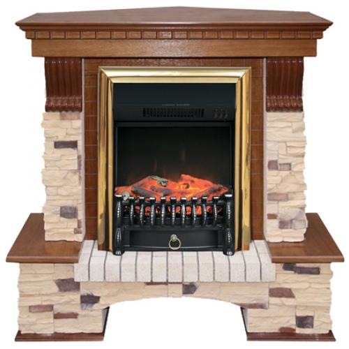 Каминокомплект Royal Flame Pierre Luxe угловой сланец (дуб)+Fobos FX Brass