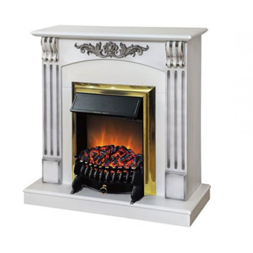 Каминокомплект Меркурий Silviia-S (белый с патиной)+Fobos Brass