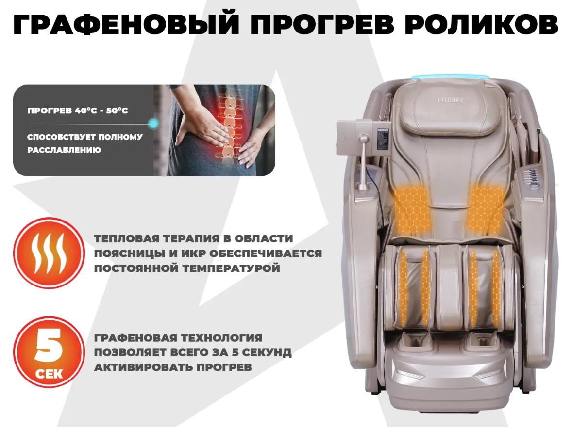 - Моментальный СПА прогрев икр и поясницы создается с использованием графеновой технологии