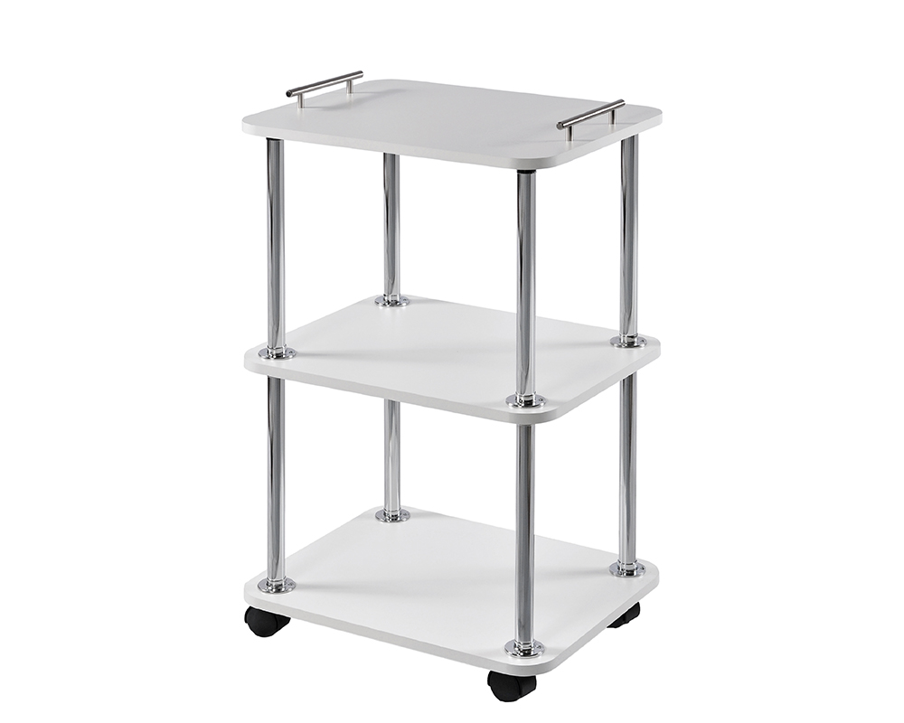 Косметологическая тумбочка на колесах обеспечит Вам комфорт во время работы. Полки изготовлены из дерева, в сочетании с высококачественной хромированной трубой, создают прочность и надежность