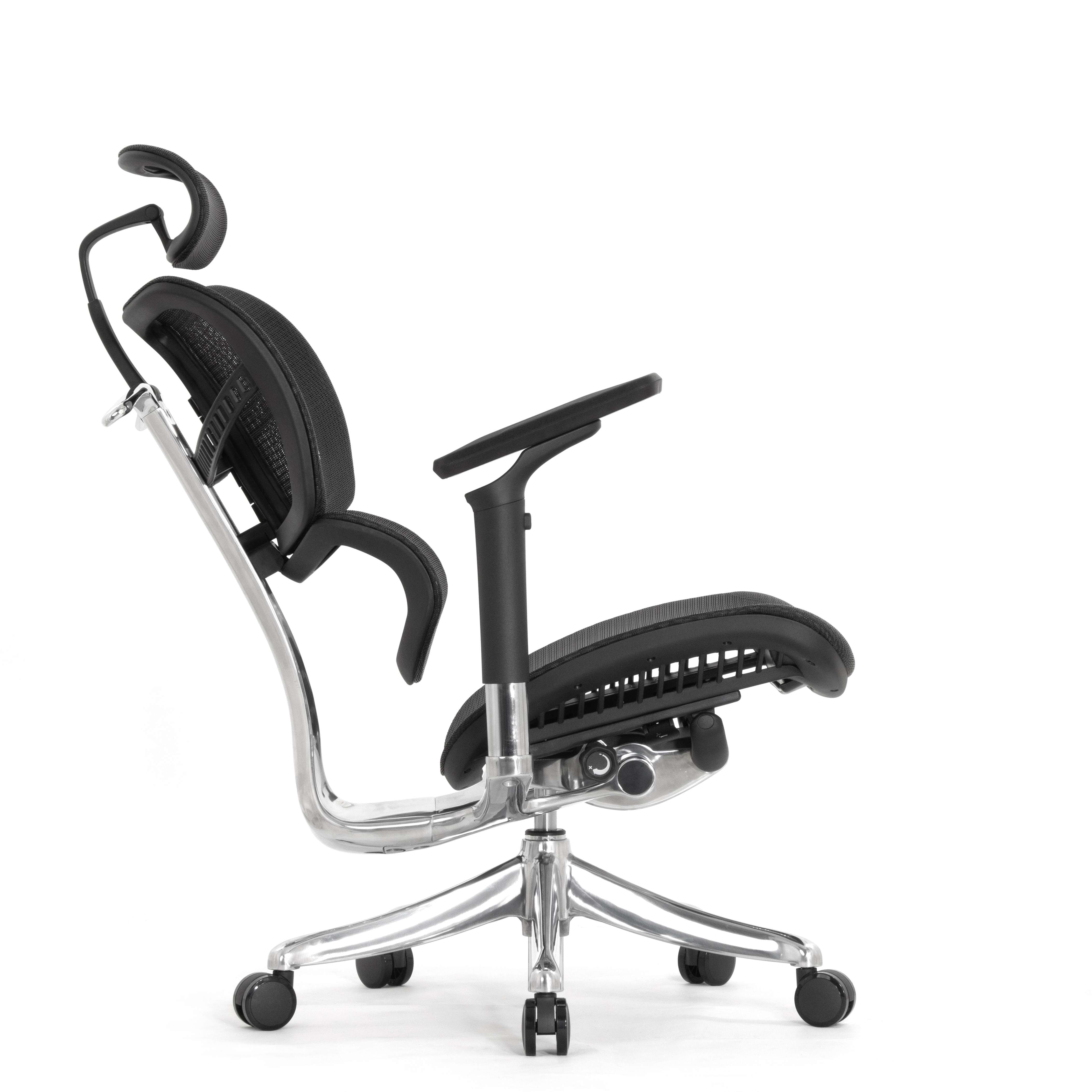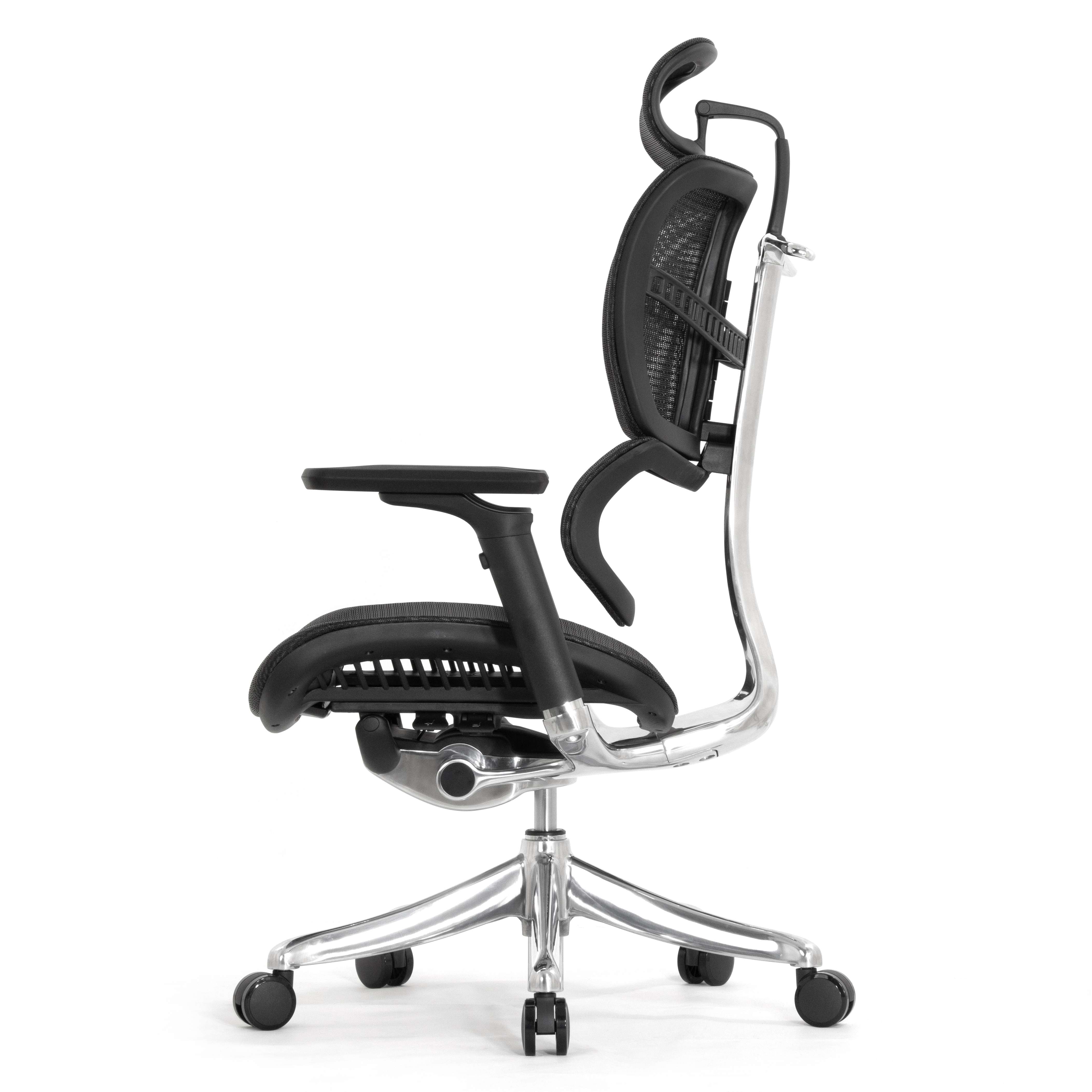 Каркас кресла и механизм выполнены из алюминиевого сплава и тщательно отполированы. Литая металлическая крестовина кресла с высоким креплением лучей. Пять оригинальных колёс с мягким покрытием.
