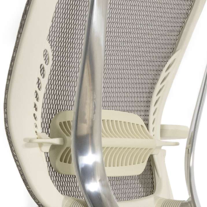 Применяемая сетка сложного плетения обладает комфортной эластичностью, что обеспечивает максимально плотное прилегание к спине, тем самым снимая осевую нагрузку с позвоночника, максимально разгружая его. Сетчатая спинка кресла свободно пропускает воздух, регулируя теплообмен.