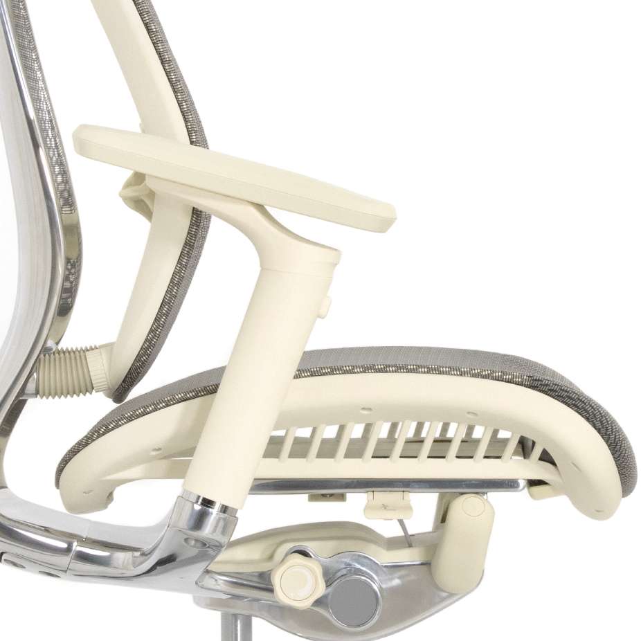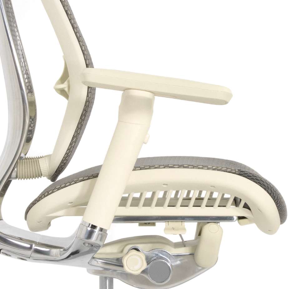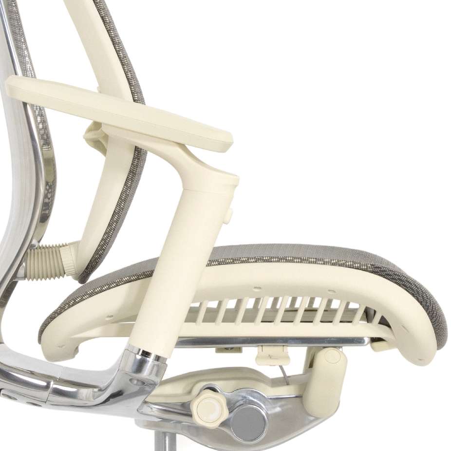 Анатомическая форма сидения. Мягкий скошенный наружный край и скос в задней части для плотного прилегания к спинки кресла и контроля за осанкой. Благодаря такой форме сидения сидеть на краю стало не возможно. Сиденье рамной конструкции с сеткой сложного плетения, дышит, препятствует соскальзыванию, максимально износостойко.