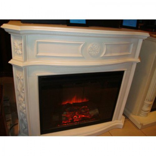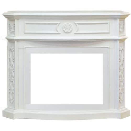 Классический каминный портал Montana 33 белый богато украшен красивым растительным узором на пилястрах, по центру розетка-цветок. Столешница и передняя панель выложена мозаикой из шпона. Такой красивый белый портал для камина украсит интерьер гостиной или спальни.