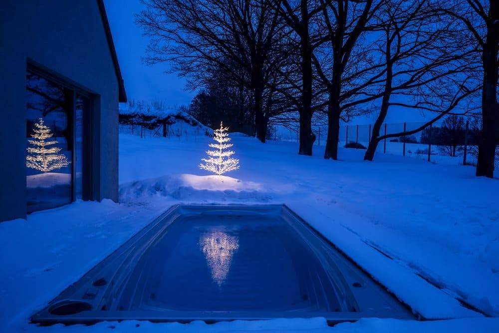 Гидромассажные спа-бассейны могут быть оборудованы зимним комплектом. Акриловая чаша с внутренней стороны покрытая термоизоляционным материалом и крышка чехол, создают эффект термоса, защищая оборудование и водопроводные трубы от замерзания, а также сохраняя температуру воды в чаше. Для эксплуатации спа зимой он должен быть постоянно подключен к электросети. Автоматика включает подогрев воды и поддерживает температуру в заданном диапазоне, что делает использование гидромассажного спа-бассейна в зимний период максимально комфортным. Единственное условие для безопасного использования бассейна зимой чтобы температура воздуха не опускалась ниже 25 градусов Цельсия.