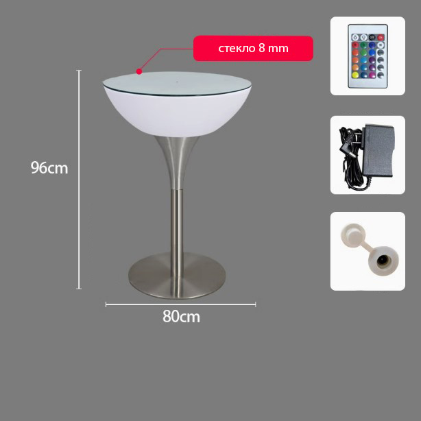 Стол светящийся круглый на металическом основании 80х80х96