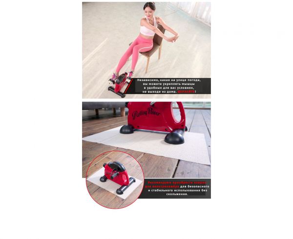 Велотренажер мини DFC B1R - модель предназначена для тех, кто любит заботиться о своём здоровье и вести активный образ жизни. Благодаря лёгкому весу и удобной ручке на корпусе, тренажёр можно легко перемещать и использовать в любом месте дома. Rolling Power подходит как для тренировки ног, так и рук.